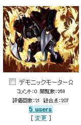 数日前投稿したデモニックモーターΩ、無事200点突破しました。