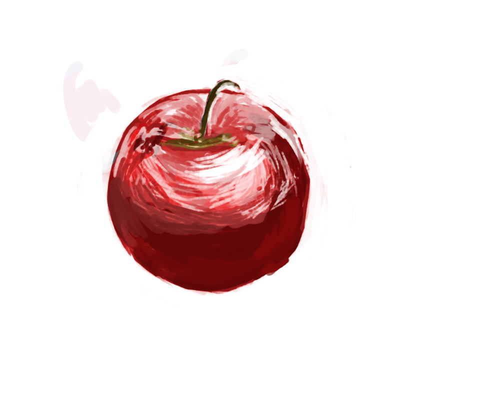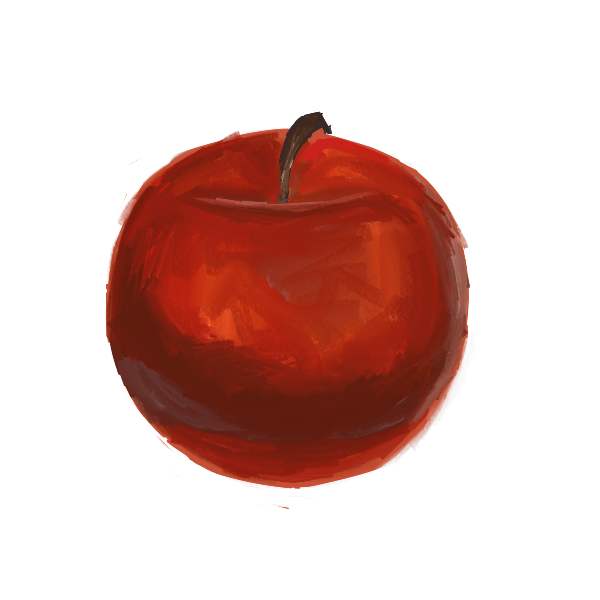 尖った感じの画風が印象的です、角々したりんごでも描いてみようかな。