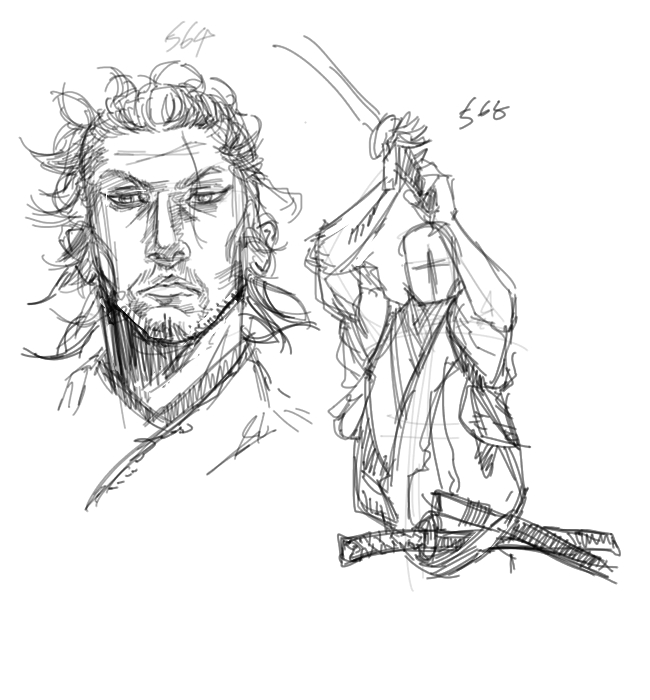 武蔵は総髪なんで、髪の毛結構描きやすかったり、てか武蔵イケメンすぎだろと